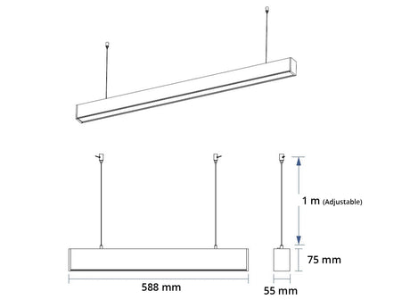 Barre Lumineuse LED Suspendue linéaire 60cm 18W connectable