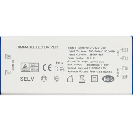 Driver LED dimmable 0-10V 34W 800mA / 38W 900mA / 44W 1060mA