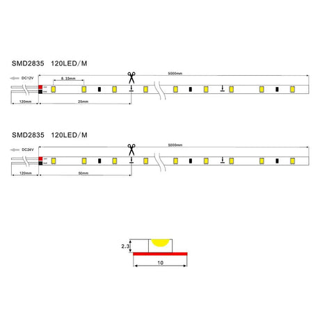 Bande LED 5 mètres SMD2835 Pro-120LEDS/m