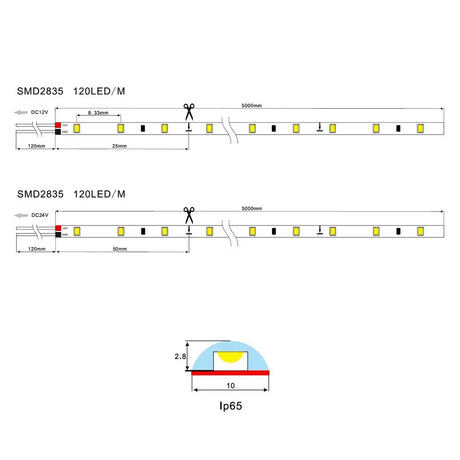 Bande LED 5 mètres SMD2835 Pro-120LEDS/m IP65