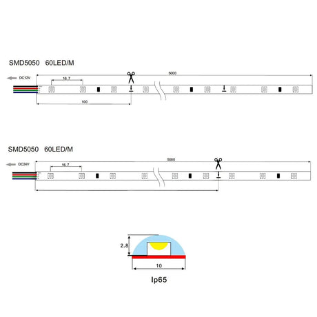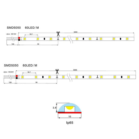 Bande LED 5 mètres SMD5050 Pro-X 60LEDS/m IP65