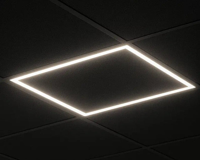 Ce panneau LED au design épuré avec un cadre noir discret s’intègre parfaitement dans un plafond en dalle noir ou avec un cadre de montage noir. Son design ouvert et minimaliste le rend presque invisible dans les plafonds sombres, tout en offrant un effet lumineux remarquable. Une solution moderne qui allie esthétique et fonctionnalité.